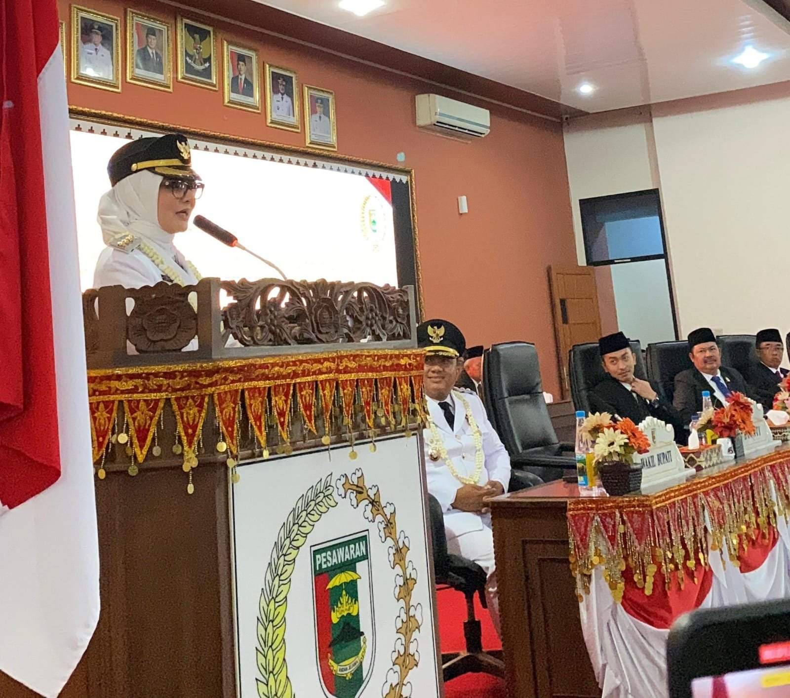 LAMPUNGINSPIRATIF.CO.ID (PESAWARAN) – Bupati Pesawaran Hj. Nanda Indira Bastian, S.E., M.M., menyampaikan pidato perdananya dalam Sidang Paripurna DPRD Kabupaten Pesawaran, Rabu (27/8/2025). Rapat ini menjadi momentum awal kepemimpinan Nanda bersama Wakil Bupati Antonius Muhammad Ali, S.H., pasca dilantik untuk memimpin Bumi Andan Jejama periode 2025–2030.