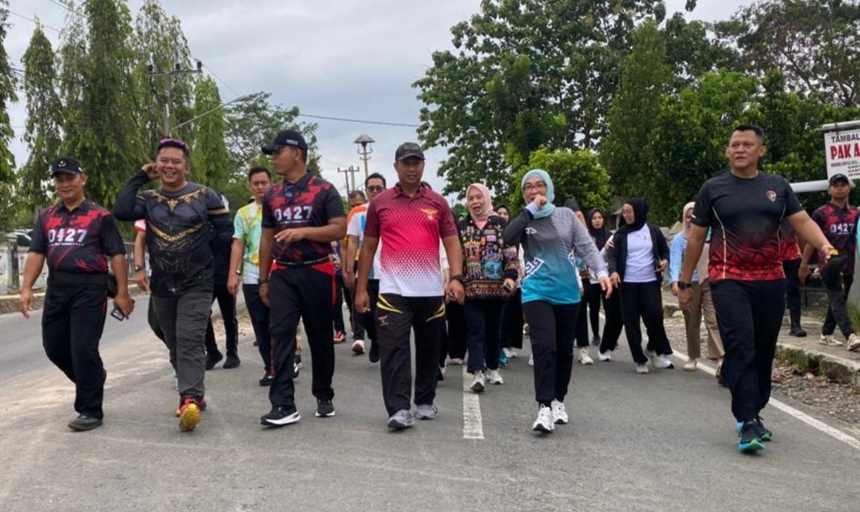 Komandan Pangkalan Udara Angkatan Darat Gatot Soebroto Puspenerbad Letnan Kolonel Cpn I Putu Arry PB Pratuana, S. Hub. Int., Beserta Anggota Melaksanakan Jalan Santai Dalam Rangka HUT TNI ke-80 yang diselenggarakan oleh Kodim 0427/Way Kanan bersama Bupati Way Kanan dan Dandim 0427/WK, (Jum’at/24/10/2025).