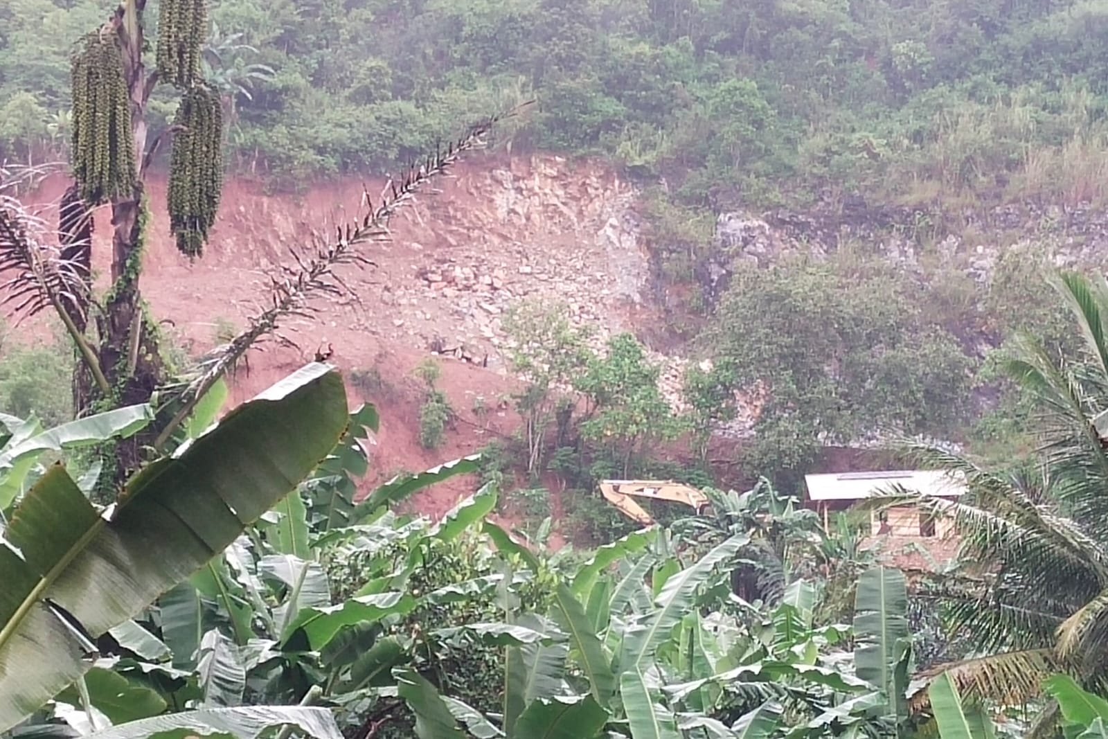 Terpantau dari jarak jauh melalui tangkap kamera di lokasi galian tambang batu kapur, tidak ada aktivitas pergerakan alat berat, hanya ada satu alat berat ekskavator jenis Caterpillar (CAT) dan gubuk.