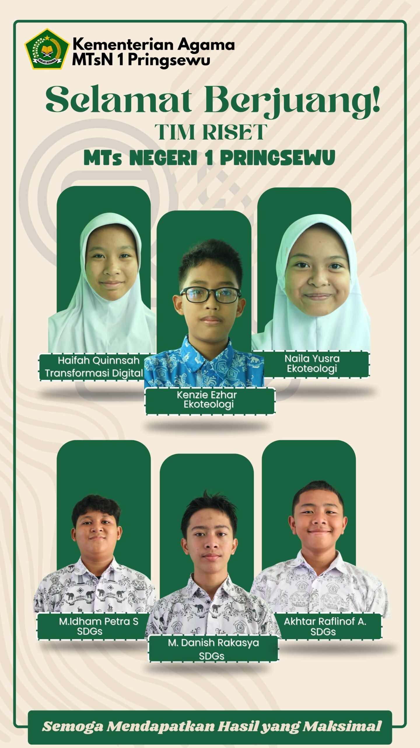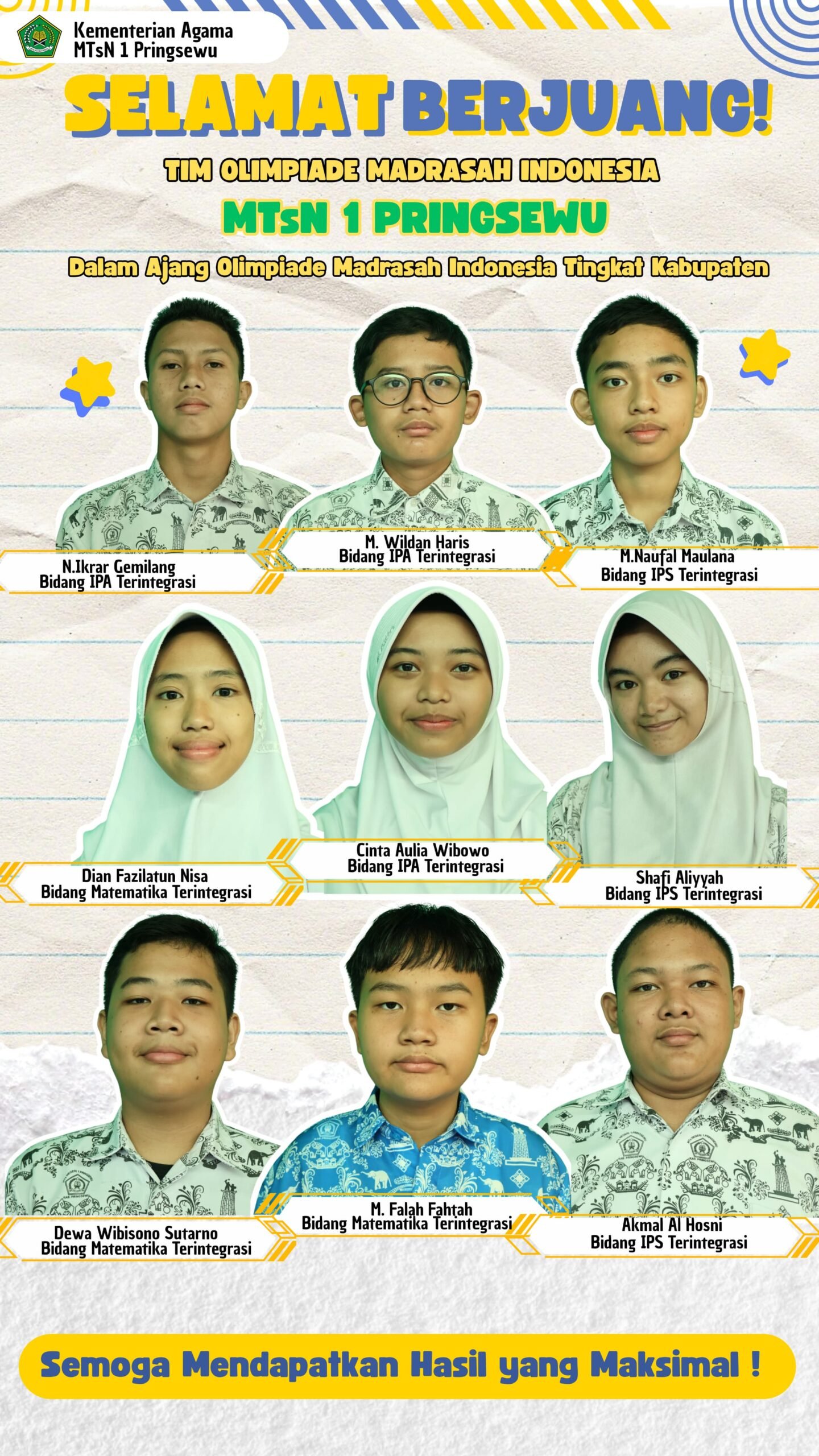 MTs N 1 Pringsewu mengirim 9 delegasi untuk mengikuti Olimpiade dan 6 delegasi tim riset.