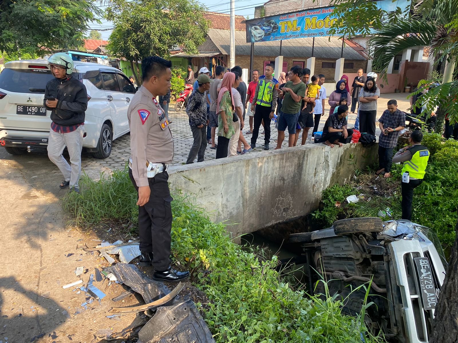 Insiden tersebut terjadi antara mobil suzuki karimun bernomor Polisi BE 1728 ANC terpelanting kedalam parit, kemudian lawannya yakni, mobil mitsubishi expander dengan plat kendaraan BE 1490 QB yang melaju dari arah berlawanan.